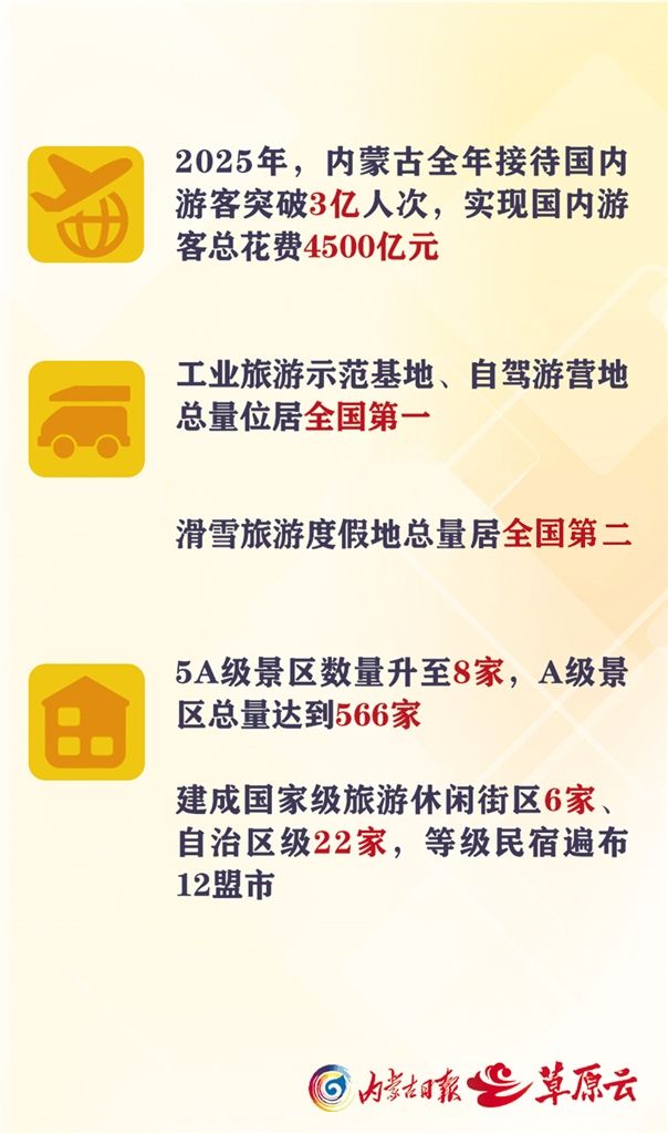 數(shù)據(jù)說話,最有分量。2025年,內(nèi)蒙古全年接待國內(nèi)游客突破3億人次,實(shí)現(xiàn)國內(nèi)游客總花費(fèi)4500億元。