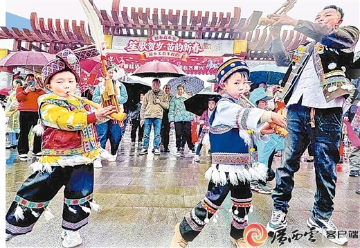 3月8日,廣西柳州市融水苗族自治縣風情苗鄉(xiāng)景區(qū)舉行首屆二十坡會,蘆笙踩堂、山歌對唱等豐富多彩的民俗活動,吸引眾多市民和游客觀賞、體驗。熊平 攝