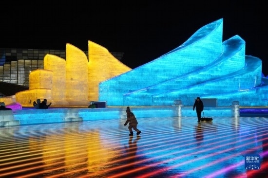 2月25日,游客在哈爾濱冰雪大世界園區(qū)游玩。