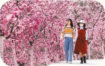 游客觀賞云南省宜良縣山后櫻花谷盛開(kāi)的櫻花。 新華社記者 陳欣波攝