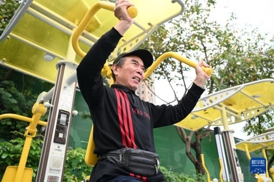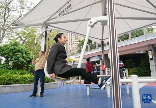 4月24日,市民在福州市鼓樓區(qū)西河智慧體育公園內的健身驛站鍛煉。