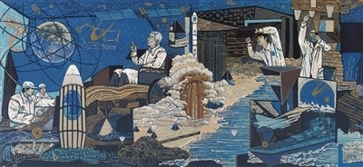 “大國重器”亮點(diǎn)紛呈,脫貧攻堅成就舉世矚目,這些時代新象都在展覽中得到體現(xiàn)。例如,張輝君油畫《蛟龍入海》、沙永匯版畫《北斗》等作品,折射出我國科技自主創(chuàng)新能力不斷提升??鬃现袊嫛陡瓯跒泛蛣⒃浦袊嫛睹利愢l(xiāng)村》,分別借助植樹造林的人物群像塑造、新農(nóng)村景觀的宏闊描繪,展現(xiàn)了彪炳史冊的人間奇跡。