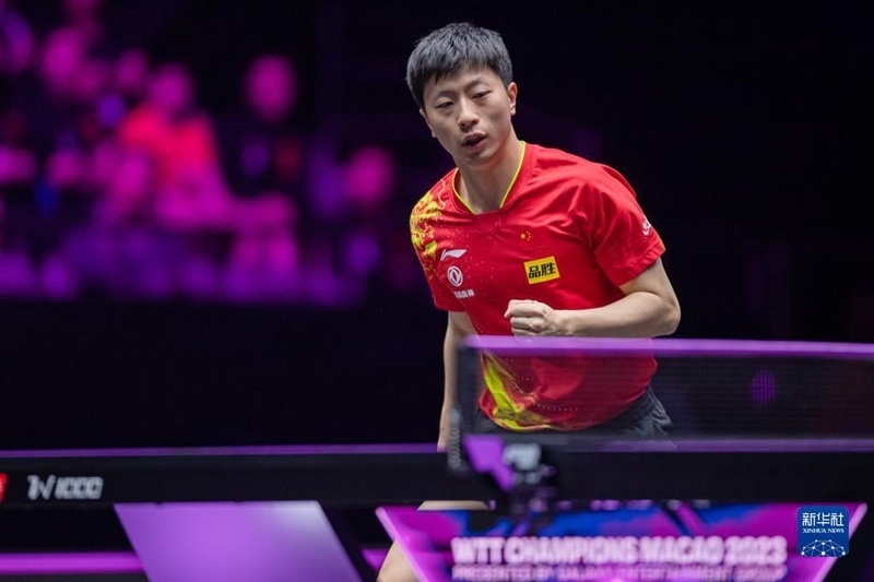2023年4月22日,馬龍在比賽中。當(dāng)日,在澳門塔石體育館舉行的2023世界乒乓球職業(yè)大聯(lián)盟(WTT)澳門冠軍賽男子單打半決賽中,中國選手馬龍以4比1戰(zhàn)勝法國選手艾利克斯·勒布倫,晉級決賽。新華社記者 張金加攝