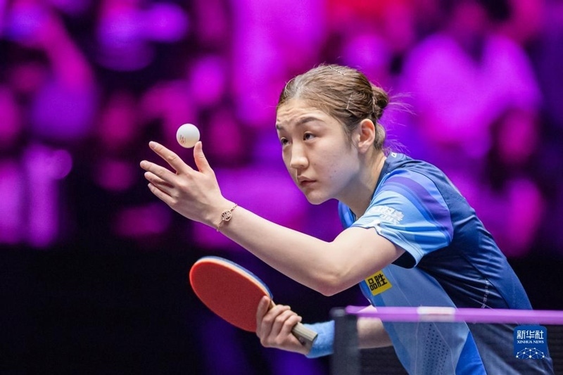 2023年4月11日,陳幸同在比賽中回球。當(dāng)日,在河南新鄉(xiāng)舉行的世界乒乓球職業(yè)大聯(lián)盟(WTT)新鄉(xiāng)冠軍賽女單首輪比賽中,中國選手陳幸同以3比0戰(zhàn)勝日本選手木原美悠,晉級十六強。新華社記者 郝源攝