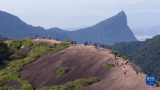 5月21日,游客在巴西里約熱內(nèi)盧蒂茹卡國家公園游覽(無人機照片)。