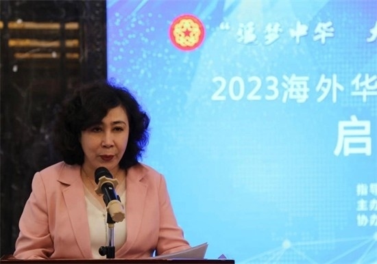 米海爾古麗·阿吉宣布“追夢中華·大美新疆”2023海外華文媒體新疆采訪行啟動。