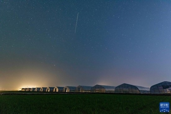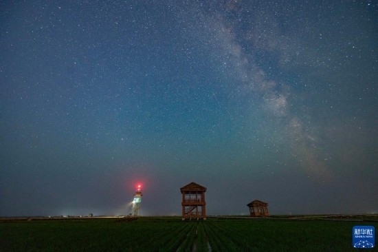 夏日夜晚,黑龍江省富錦市萬畝水稻公園的稻田之上星空璀璨,美麗壯觀。