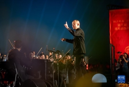來自昆明聶耳交響樂團及昆明市民族歌舞劇院民樂團的演奏家們在昆明市滇池畔共同演奏包括《義勇軍進行曲》《賣報歌》在內(nèi)的聶耳代表作(7月17日攝)。