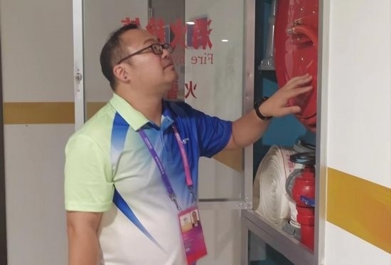 王偉亮駐點在杭州黃龍體育中心體育場,根據(jù)足球賽開賽時間的特點,他一般是下午17:30以前到崗,先是對黃龍體育中心體育場開展賽前風(fēng)險查勘,沿著場館外圍觀眾通行通道對消防設(shè)施、排水設(shè)施、通風(fēng)設(shè)施、觀眾席出入口、無障礙通行設(shè)施以及懸空固定設(shè)施逐一進行檢查,進行風(fēng)險排除。在賽中和賽后,他也要持續(xù)巡場,對因觀眾進場導(dǎo)致發(fā)生的新的風(fēng)險情況予以反饋和處置,真正結(jié)束工作已經(jīng)要到凌晨0:30左右。如今亞運已經(jīng)開幕,多場比賽均達到場館的最大負荷,王偉亮長期處于精神高度集中、體力臨近上限的狀態(tài)。但是他沒有絲毫松懈,遇到突發(fā)情況時,依舊會第一個沖上去提供幫助。