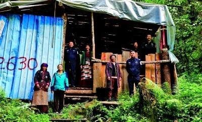 山南市洛扎縣拉郊邊境派出所執(zhí)勤點(diǎn)里,民警與群眾合影。本報(bào)記者 畢玉才攝