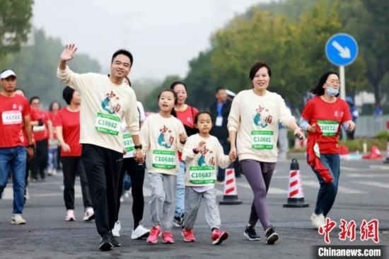 馬鞍山半程馬拉松比賽開設(shè)家庭親子跑項目。張強 攝