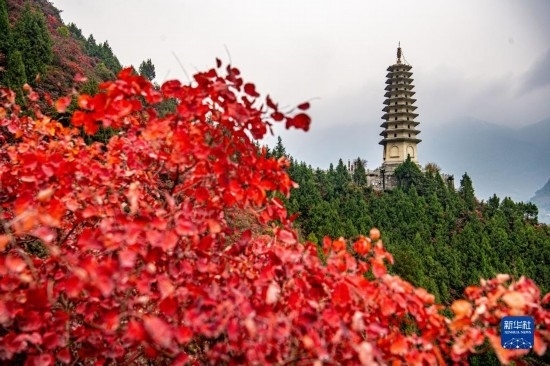 初冬時節(jié),長江三峽重慶市巫山縣水域兩岸色彩斑斕,紅葉似火,美如畫卷。