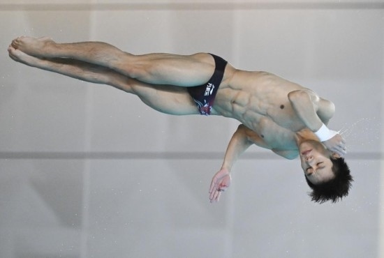 男子10米臺決賽中,楊昊、練俊杰、陳艾森獲得前三名,名將曹緣名列第五。