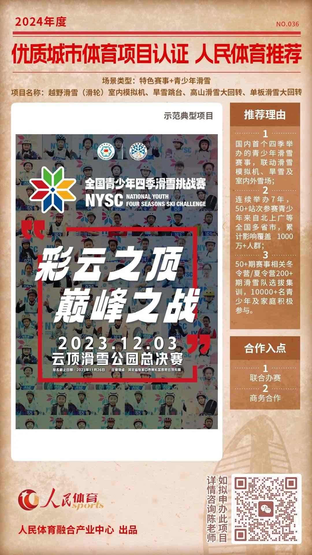 人民體育發(fā)起的“優(yōu)質體育賽事及活動認證推薦計劃”,于2024年01月推出第四批共9個推薦項目,本期推薦首次推出單個項目深度介紹欄目。同時,第五期推薦項目征集開啟中。