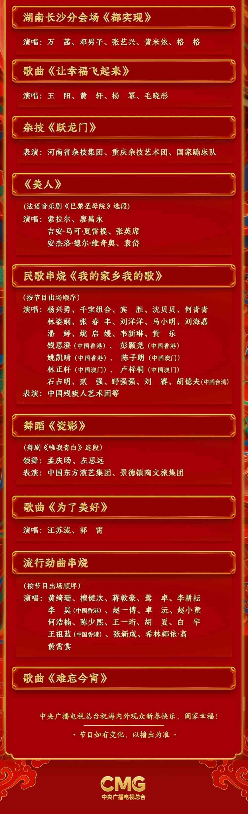 春滿中華,福到萬家。中央廣播電視總臺《2024年春節(jié)聯歡晚會》節(jié)目單正式發(fā)布。