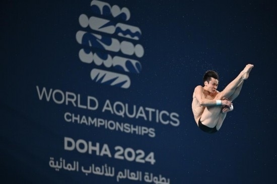 2月10日,中國選手楊昊在男子10米臺決賽中。新華社記者 薛宇舸 攝