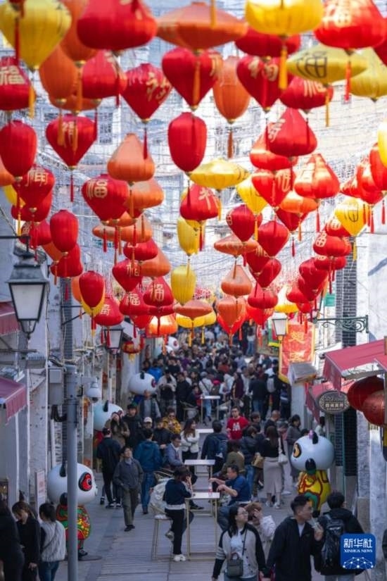當日是農歷正月初三,澳門大三巴牌坊、議事亭前地等多個旅游景點游人如織。