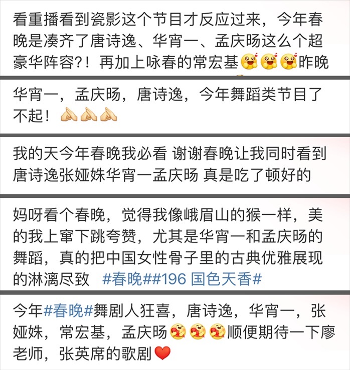 舞蹈迷們發(fā)現,今年的春晚舞蹈節(jié)目配置太高,能聚起如此眾多現役頂尖舞蹈家的,也就只有春晚的舞臺了。但舞蹈節(jié)目的成功除了有頂尖舞者的才華,最重要的,還有創(chuàng)作者的誠懇。