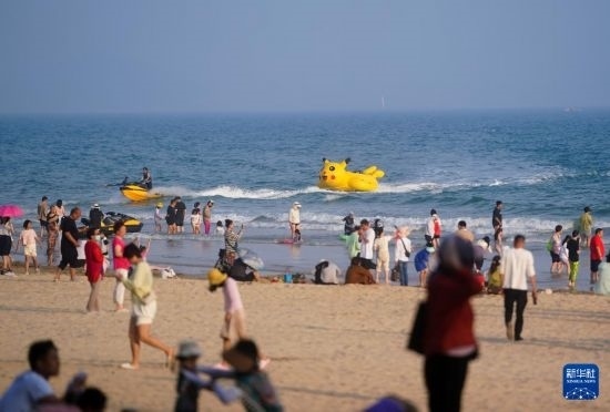 2月19日,游客在海南萬(wàn)寧石梅灣海灘游玩。