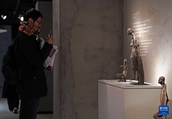 3月14日,媒體人員在觀看參展作品《帶著微笑的康塔羅斯酒杯》。