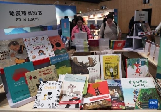 這是4月12日在法國巴黎臨時(shí)大皇宮舉行的2024巴黎書展上拍攝的中國圖書。
