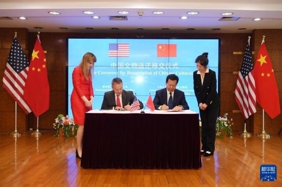 4月17日,在美國紐約中國駐紐約總領(lǐng)館,中美雙方代表出席中國流失文物藝術(shù)品返還移交儀式。
