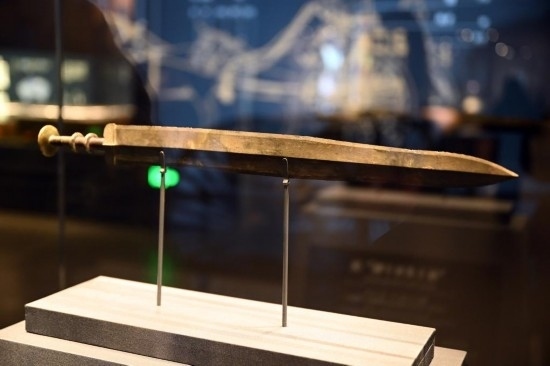 安徽楚文化博物館展出的越王者旨于賜劍。新華社記者 周牧 攝