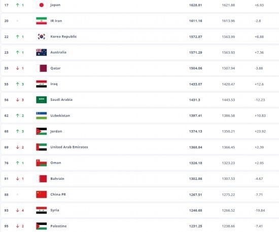 亞洲前三為日本隊(duì)、伊朗隊(duì)、韓國(guó)隊(duì)