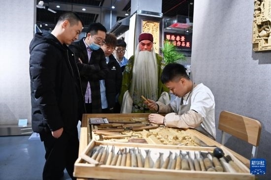 晉作木雕:木里有千秋 2月23日,手藝人在展覽現(xiàn)場(chǎng)展示晉作木雕技藝。2月23日,......