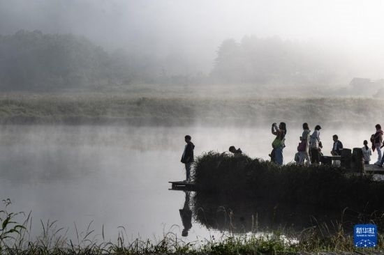在“華中屋脊”湖北神農(nóng)架深處有一片高山濕地,一條小溪串起9個湖泊,故名“大九湖”。天剛破曉,大九湖上晨霧縹緲,風(fēng)光秀麗,游人仿佛置身于夢幻的世界。