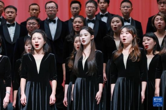 12月29日,貴州大學(xué)音樂(lè)學(xué)院愛(ài)樂(lè)合唱團(tuán)在演出。