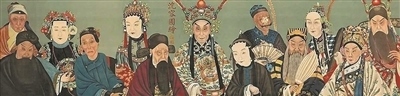 工筆寫生戲畫像《同光十三絕》,清末畫師沈蓉圃所繪,展現(xiàn)了徽班進(jìn)京后由演唱徽調(diào)和昆腔衍變?yōu)榫﹦〉?3位著名演員、京劇奠基人,對了解當(dāng)時演員的扮相、服飾及前輩藝術(shù)家的風(fēng)采,是極為珍貴的文獻(xiàn)資料。