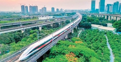 復(fù)興號(hào)列車(chē)駛出廣州南站。