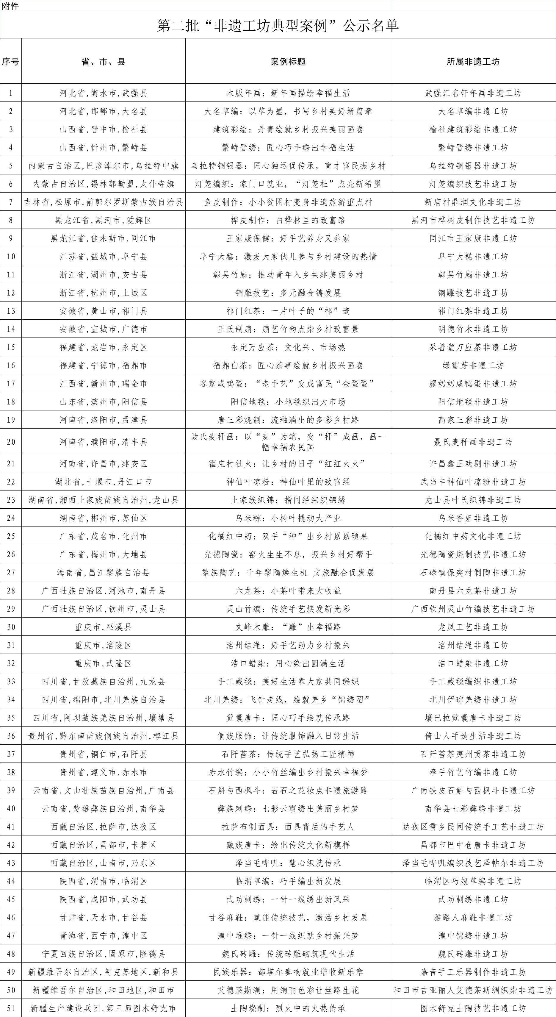 人民網(wǎng)北京3月19日電 (記者楊虞波羅)根據(jù)《文化和旅游部辦公廳 人力資源社會(huì)保障部辦公廳 農(nóng)業(yè)農(nóng)村部辦公廳關(guān)于推薦第二批“非遺工坊典型案例”的通知》,經(jīng)各省推薦和專家評(píng)議,第二批“非遺工坊典型案例”推薦和遴選工作于日前結(jié)束?,F(xiàn)將推薦名單進(jìn)行公示。