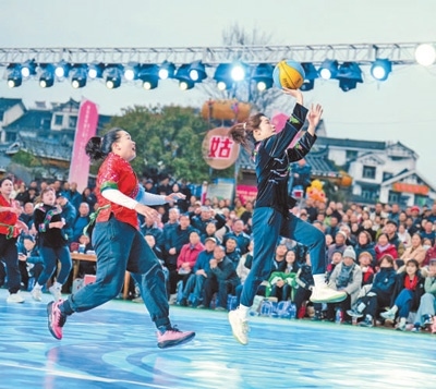 場上,身著特色服飾的婦女們或懷抱籃球健步如飛,或三五成群笑鬧爭球;場邊,蘆笙悠揚(yáng),錦雞舞、銅鼓舞輪番上陣,十二道攔門酒的醇香與觀眾的喝彩匯成獨(dú)特的苗味交響。傳統(tǒng)頭帕與運(yùn)動(dòng)發(fā)帶相得益彰,古法藍(lán)染與熒光記分屏互相映襯,這場縣城里的活力賽事,流淌著千年苗韻,躍動(dòng)著時(shí)代脈搏。