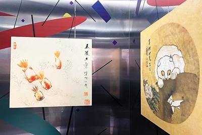 藝術(shù)如何真正進入社區(qū)空間,成為居民生活的一部分?“藝術(shù)電梯”計劃給出了一種城市微更新的可能路徑。2023年,社區(qū)樞紐站與中華藝術(shù)宮(上海美術(shù)館)、上海大學(xué)上海美術(shù)學(xué)院聯(lián)合發(fā)起了“藝術(shù)電梯”計劃。該計劃將中華藝術(shù)宮“歷史的星空:二十世紀前期海派繪畫研究展”中2件虛谷的作品《白貓》《春波魚戲圖》融入小區(qū)電梯。