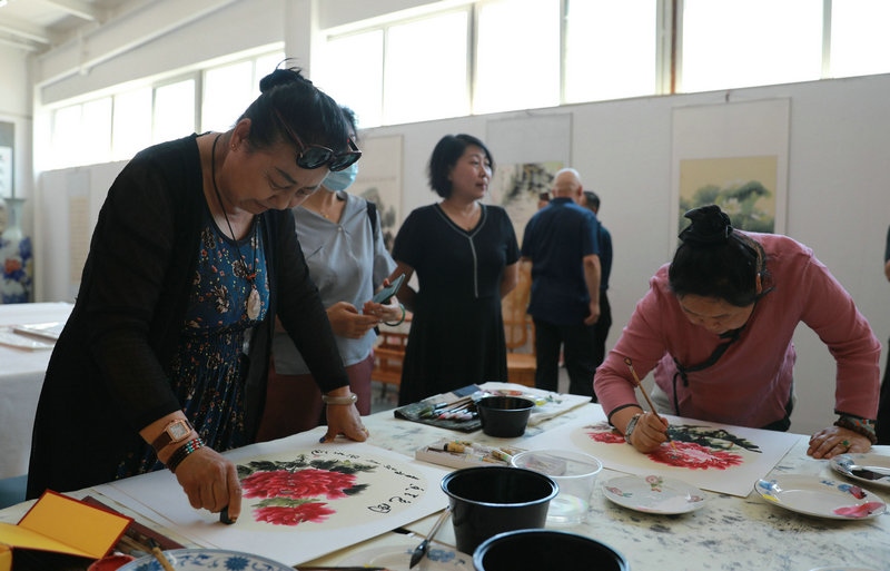 北疆新聞網(wǎng)、北疆新聞客戶端消息(記者 張楊 張?chǎng)危?/strong>6月22日,在內(nèi)蒙古呼和浩特市維家惠家居建材市場(chǎng)古木逢春書畫院,一場(chǎng)主題為“不忘初心、益心向黨”的書畫筆會(huì)正在舉行,蔡銀虎、范美、白愛民、徐廣義、李鳳云、江濤、張杏花、劉培誠(chéng)、鄧庭儒、秦彤……一位位耳熟能詳?shù)臅嫾?,正在傾情翰墨,凝神筆端,徜徉藝海流連忘返。這是內(nèi)蒙古公益慈善事業(yè)發(fā)展促進(jìn)會(huì)愛心書畫院舉行的首屆書畫筆繪暨慶祝建黨100周年名家聯(lián)誼活動(dòng)。