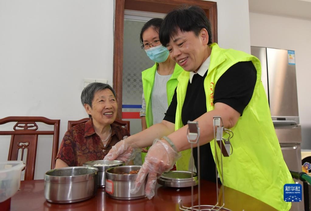 在江西省南昌市東湖區(qū)彭家橋街道文教路北社區(qū),“幸福食堂”的義工在給社區(qū)內(nèi)出行困難的老人提供送餐服務(wù)(2020年7月29日攝)。從2018年12月起,南昌市東湖區(qū)彭家橋街道在社區(qū)打造以黨建引領(lǐng)、社區(qū)主導(dǎo)、愛心企業(yè)贊助的“幸福食堂”,專門為社區(qū)獨居、孤寡及生活困難的老年人提供營養(yǎng)餐,以此進(jìn)一步完善社區(qū)居家互助養(yǎng)老服務(wù)。新華社記者 彭昭之 攝