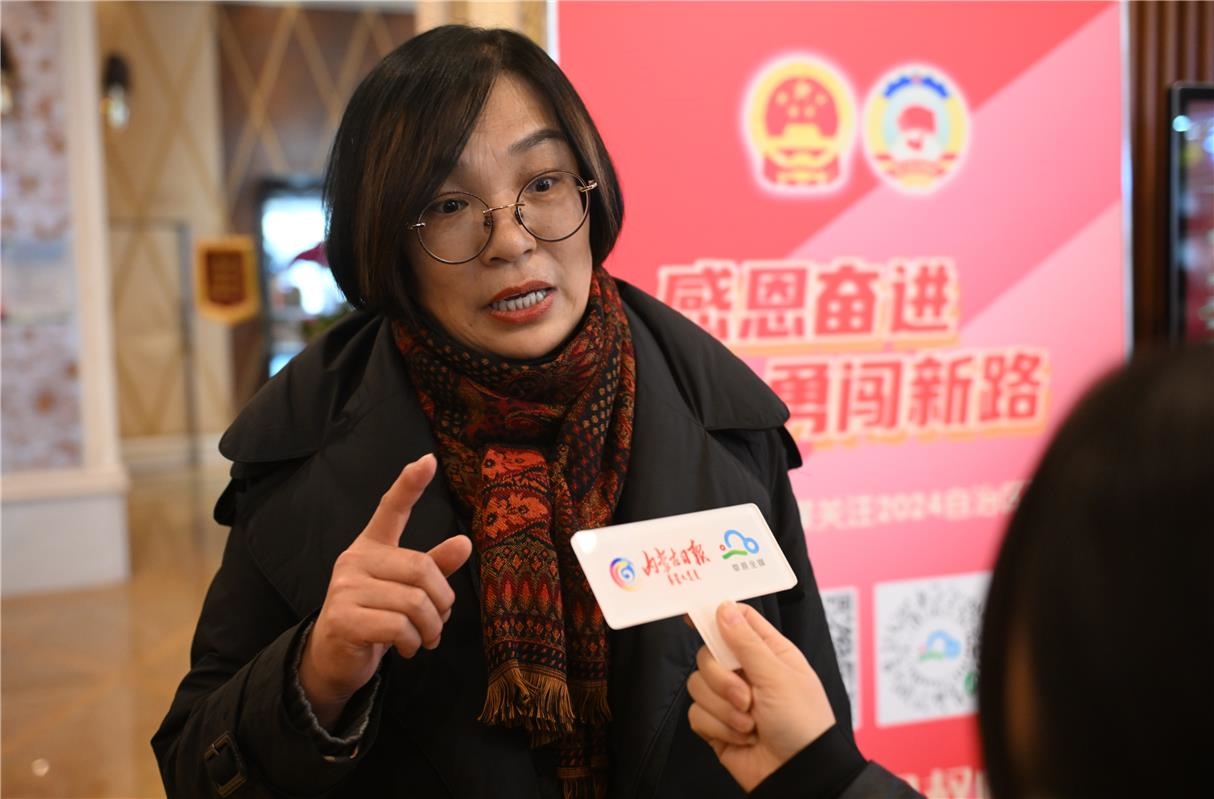 出席自治區(qū)十四屆人大二次會議的人大代表常曉萍接受內(nèi)蒙古日報(bào)·草原全媒記者采訪。