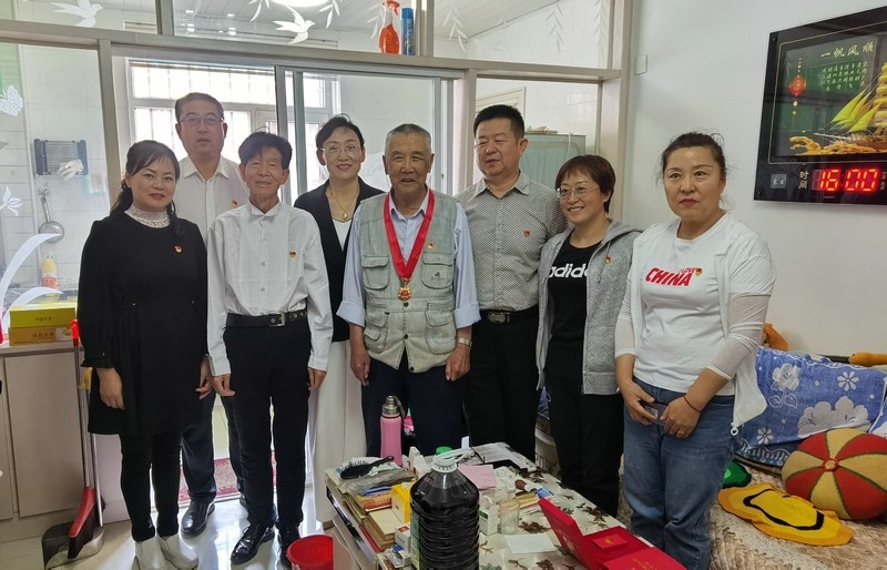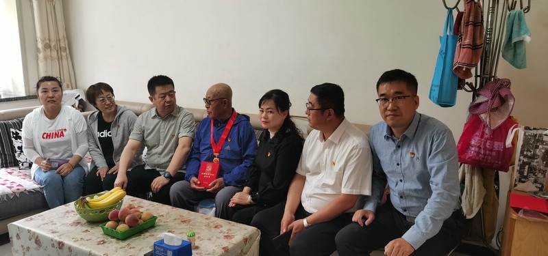 當(dāng)天下午,各黨組織代表共同來到阿左旗額魯特街道黨工委所屬社區(qū),入戶慰問了3名老黨員與1名貧困戶,為他們送去了生活物資,還為90歲高齡老黨員常根禎及86歲老黨員張世云佩戴了“光榮在黨五十年”榮譽(yù)勛章。幾位老黨員非常感動,給大家講起了自己當(dāng)年的故事。