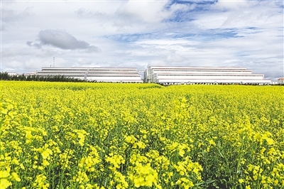 內(nèi)蒙古新巴爾虎右旗烏努格吐山銅鉬礦尾礦庫(kù)油菜花田?! ?/p>